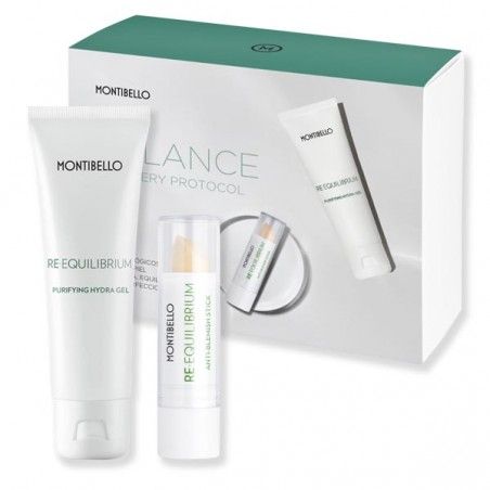 PACK GEL RE-EQUILIBRIUM es un gel facial, de textura ligera y de acción purificante e hidratante específico para pieles grasas con tendencia acneica. Gracias a este gel o emulsión reequilibrante de Montibello se evita la proliferación de bacterias, previniendo las espinillas, las marcas, los puntos negros y los brillos sin resecar la piel y dejándola fresca y elástica. Fórmula no comedogénica.